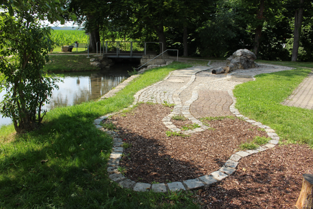 Wohlfühlstation mit Barfußpfad und Wasserzugang in Bachhagel