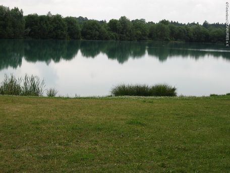 Naturbelassener Baggersee Der Baggersee ist von einer großzügigen Liegewiese umgeben. Ein Umkleidehäuschen und Abfallbehälter sind vorhanden.