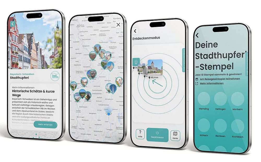 Danach geraten wir in einen guten Rhythmus: gehen, schauen, kurz nachlesen, weitergehen. Irgendwann fällt mir ein, dass die App nebenbei Stempel sammelt. Zehn Städte in Bayerisch-Schwaben braucht es, um an einem Gewinnspiel teilzunehmen – ein Wochenende für zwei Personen mit Übernachtung, Stadtführung und Museumseintritt, gültig bis Ende 2026. Genügend Zeit also, um weitere tolle Stadhupferl in Bayerisch-Schwaben zu entdecken. Was wir mit Sicherheit bald wieder tun werden.