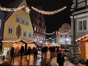Romantischer Weihnachtsmarkt auf der Altstadtinsel Ried in Donauwörth