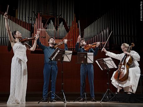 05.07.2026Einziger Terminmehr dazuNovo QuartetKaya Kato Møller (Violine), Nikolai Vasili Nedergaard (Violine), Daniel Śledziński (Viola), Signe Ebstrup Bitsch (Violoncello)Programm:Joseph Haydn - Streichquartett d-moll op. 103Dmitri