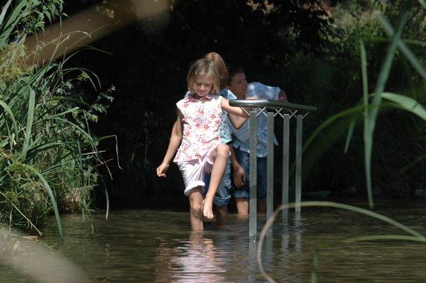 Das Naturtretbecken im Krumbächlein ist eine Station entlang des Kneipp-Rundwegs in Krumbach.
