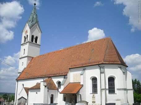 Die weit in das Lechtal hinein sichtbare heutige Kirche besteht baugeschichtlich aus drei Teilen: dem spätgotischen Chor aus dem 15. Jahrhundert, dem bis 1747 wieder aufgebauten barocken Langhaus sowie