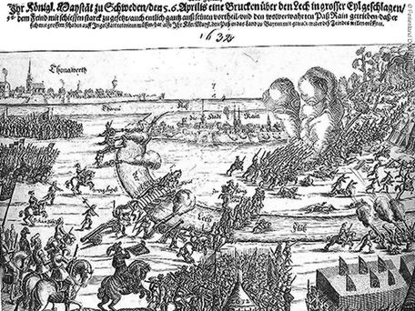 In der Schlacht bei Rain im April 1632 gegen die Schweden unter Gustav Adolv wurde der General der katholischen Liga, Generalfeldmarschall Graf von Tilly schwer verwundet und erlag in Ingolstadt seinen