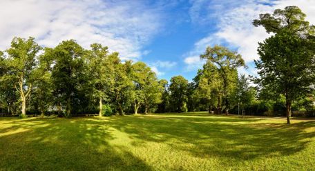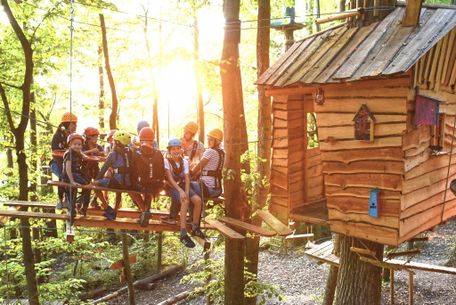Hochseilgarten inmitten des natürlichen Baumbestandes.
