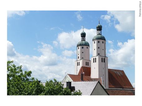 Das doppeltürmige Wahrzeichen der Stadt Wemding geht auf ein Gelübde Mangolds I. von Wörth zurück. Ab 1030 Bau einer wohl dreischiffigen, kreuzförmig angelegten Basilika. Im Lauf der Jahrhunderte