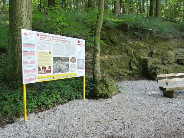 Kunstwerk von Manfred Laber auf der Wemdinger Platte. Die Wemdinger Zeitpyramide wurde anlässlich der 1200-Jahrfeier der Stadt Wemding 1993 begonnen. Die 1200 Jahre Stadtgeschichte sollen durch Dekadensteine