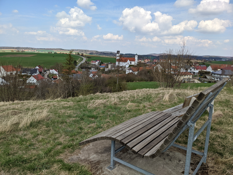 Der Besinnungsweg in Mittelneufnach, führt vom Ortskern aus durch die leicht hügelige Staudenlandschaft rund um Mittelneufnach.