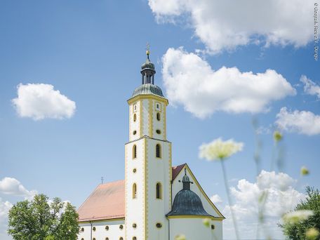 Beginnend am Feuerwehrhaus Erlingshofen, Richtung Norden durch die Siedlung, am Waldrand entlang, vorbei an einem großen Insektenhotel hinauf zur Waldkapelle Maria Magdalena. Hier bietet sich ein wunderschöner.