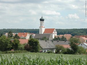 mehr dazuDer Kaisheimer Abt Cölestin I. Meermoos ließ den für die dörflichen Verhältnisse stattlichen, einschiffigen Bau unter Verwendung des spätgotischen Turmuntergeschosses um 1756/57 im reinsten Stil